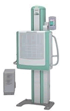 本機は撮影部(正面グレーの部分)の前に患者さんに立ってもらいX線照射を行い、透過したX線を画像信号に変換して送信し、光ディスク記録機、モニター等で診断することができます。