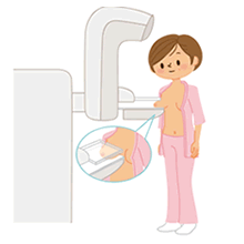 乳房を上下、斜め上下から圧迫し、腫瘍の有無や大きさ、形、乳がんの初期症状である石灰化の有無を調べます。